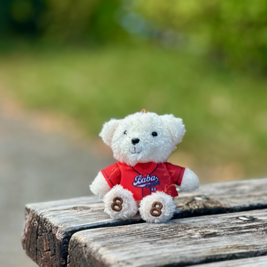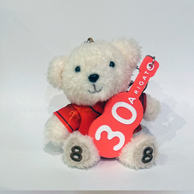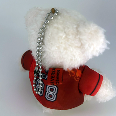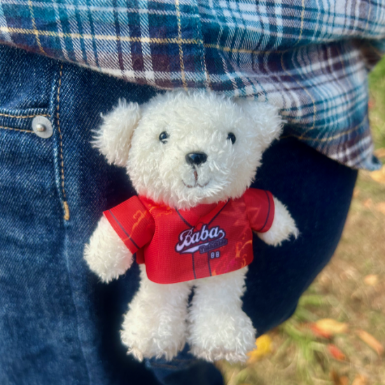ばーくんは、ババユニ着用のシロクマがキュートになったキーホルダー型のぬいぐるみです。足裏には88の刺繍が施され、背中には30周年記念のオリジナルタグもついています。座っても立ってもかわいい見た目は、どんな場面でも癒し効果ばつぐん。心が和むこと間違いなしです。