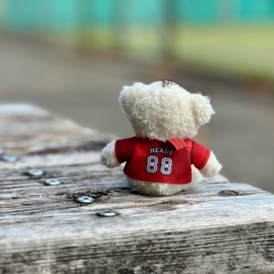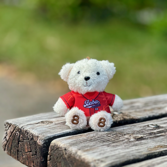ばーくんは、ババユニ着用のシロクマがキュートになったキーホルダー型のぬいぐるみです。足裏には88の刺繍が施され、背中には30周年記念のオリジナルタグもついています。座っても立ってもかわいい見た目は、どんな場面でも癒し効果ばつぐん。心が和むこと間違いなしです。